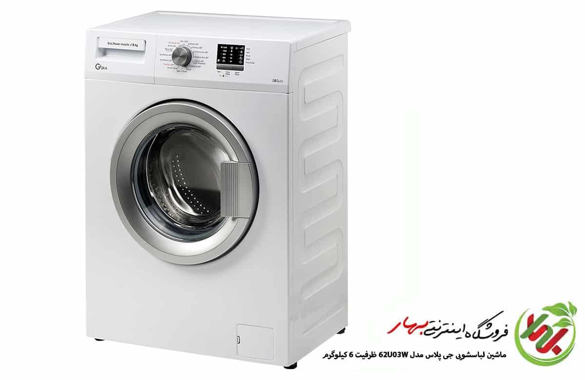مشخصات و قیمت ماشین لباسشویی جی پلاس مدل 62U03W ظرفیت 6 کیلوگرم