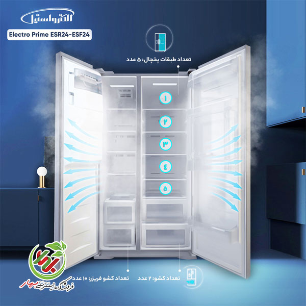 امکانات جانبی یخچال فریزر دوقلو الکترواستیل سری پرایم prime مدل ES24